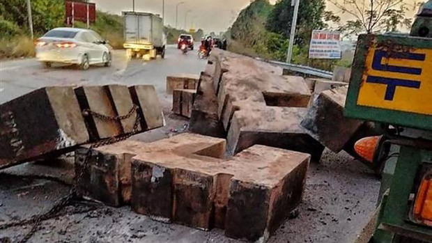 Khi đến đường gom dân sinh thuộc địa phận thôn Đạo Ngạn 1 (xã Quang Châu, H. Việt Yên) thì nhiều khối bê tông trên xe bất ngờ rơi xuống đường, đè trúng xe máy mang biển số 22FA-008.69 do Vũ Đức Huy (trú P. Kim Chân, TP. Bắc Ninh, Bắc Ninh) điều khiển.