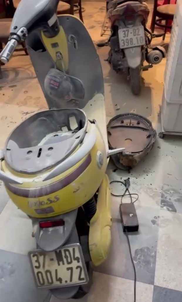 Anh Nguyễn Quốc Toàn (SN 1986, chủ nhà) cho biết: “Lúc đó, cả nhà đang ngủ, tôi nhìn qua cửa sổ thấy ánh sáng màu vàng, không nghĩ là cháy xe máy điện. Khi tôi ra kiểm tra thì phần cắm dây sạc với chiếc xe đã cháy. Ngay lập tức, tôi lấy bình cứu hỏa mini ở góc nhà dập lửa”.
