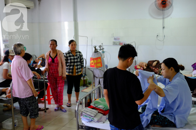 Một tháng nay, bé Trần Nhật Khang (12 tuổi) vào khoa Nội tổng hợp, Bệnh viện Quận 2 (TP.HCM) chăm sóc chị Nguyễn Thị Hương (35 tuổi, ngụ quận 9, TP.HCM). Nhìn dáng cậu bé loay hoay cho mẹ uống nước, ăn cơm, nhiều người ở những giường bên cạnh không khỏi chạnh lòng.