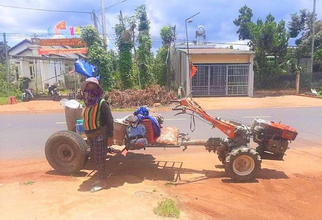 Sáng 30/7, anh Y Trí Rơ Tung - Bí Thư chi Đoàn buôn Rơ cai A (xã Krông Nô, huyện Lắk, Đắk Lắk) cho biết, trong lúc làm nhiệm vụ tại chốt kiểm soát dịch COVID-19 tại xã Krông Nô đã gặp một hoàn cảnh về quê bằng xe cày độ chế. Đó là gia đình anh K’panh (xã Ea Trol, huyện Sông Hinh, Phú Yên).