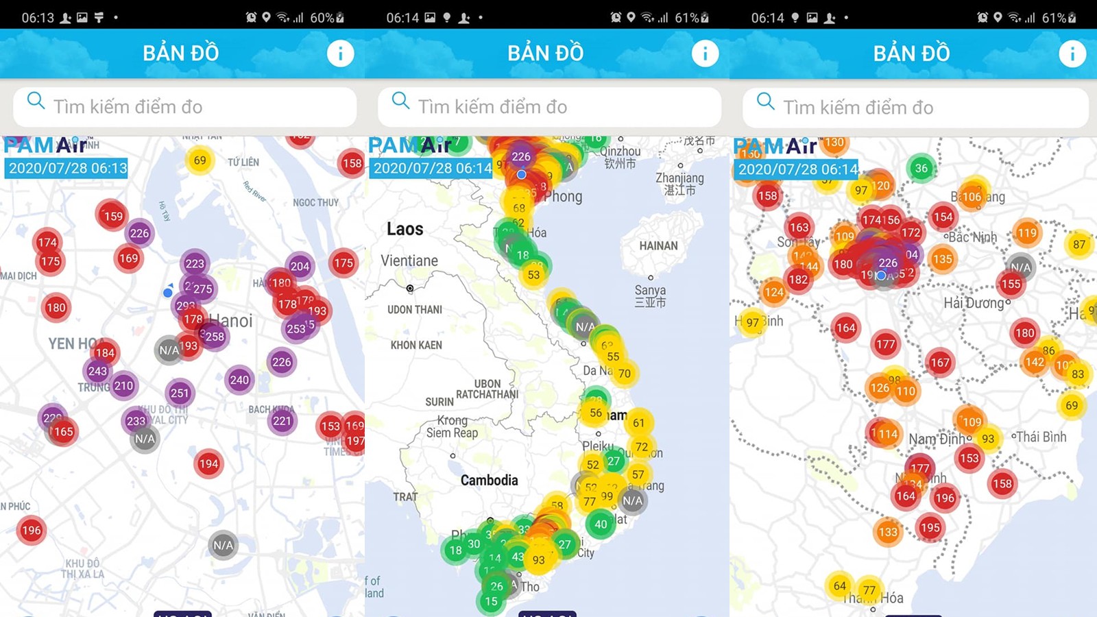 Sau hai tháng chất lượng không khí tương đối tốt nhờ điều kiện thời tiết, từ rạng sáng ngày 27/7, chất lượng không khí có xu hướng kém rồi xấu. Đến 6h30 sáng nay (28/7), hơn 80 điểm đo chất lượng không khí của hệ thống theo dõi chất lượng không khí PAM Air đều ở ngưỡng đỏ và tím. Trong đó điểm đo tại Ô Chợ Dừa có chỉ số AQI (chỉ số chất lượng không khí) lên 318 - ở mức nguy hại.
