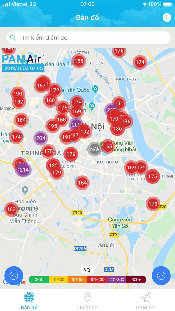 Hệ thống PAMAir ghi nhận ô nhiễm không khí ở Hà Nội vào sáng 6/11.