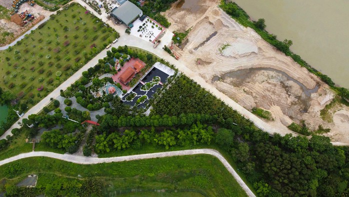 Tuy nhiên, trên thực tế, cả khu vực bãi tập kết cát được xây dựng khang trang, bề thế không khác gì một khu nghỉ dưỡng với khu nhà sàn 2 tầng, hòn non bộ, hồ cá cảnh, sân vườn. Trong khi, bãi tập kết cát chỉ chiếm 1 phần rất nhỏ, nằm sát bờ sông Mã.