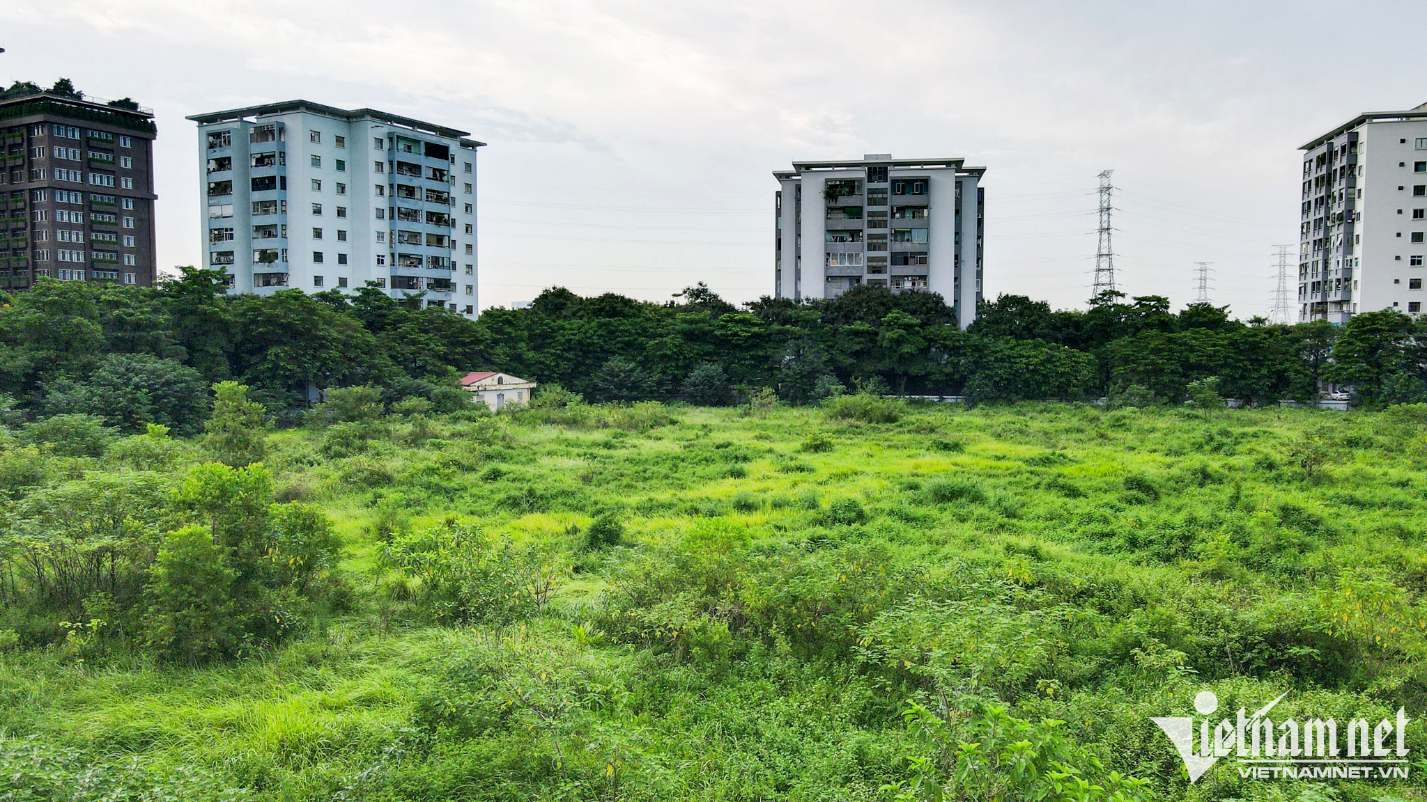 Tại khu đô thị Pháp Vân - Tứ Hiệp, nhiều ô đất trường học cũng bị quy hoạch vào đất nghĩa trang, ao đình và chưa thể giải phóng được mặt bằng để triển khai xây dựng. Trong ảnh, một khu đất được quy hoạch xây trường học nhưng vẫn trong tình trạng bỏ hoang, cỏ dại mọc um tùm.