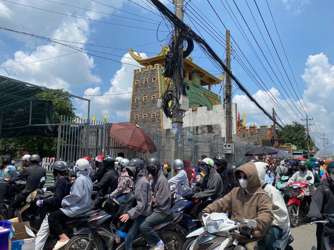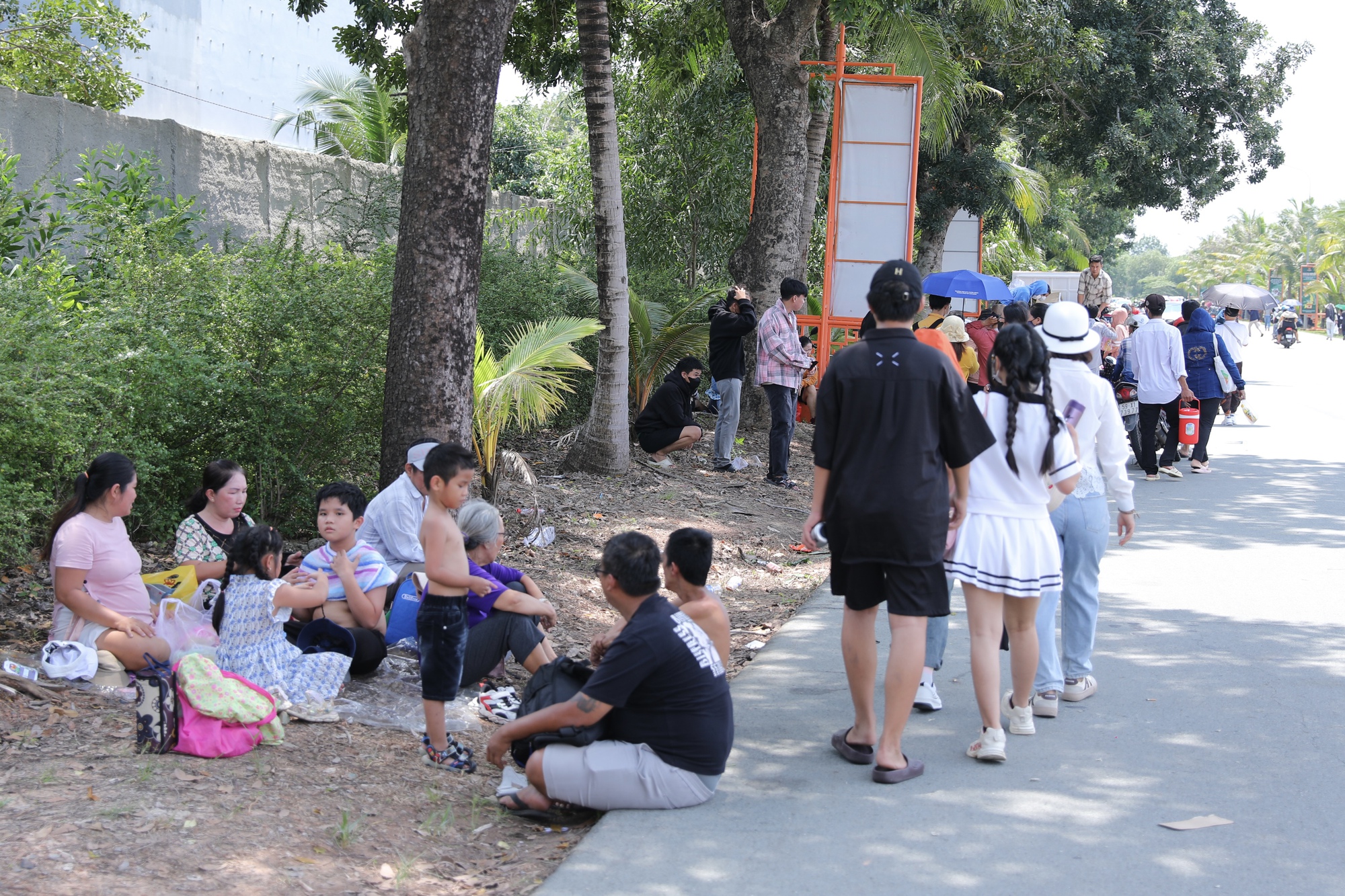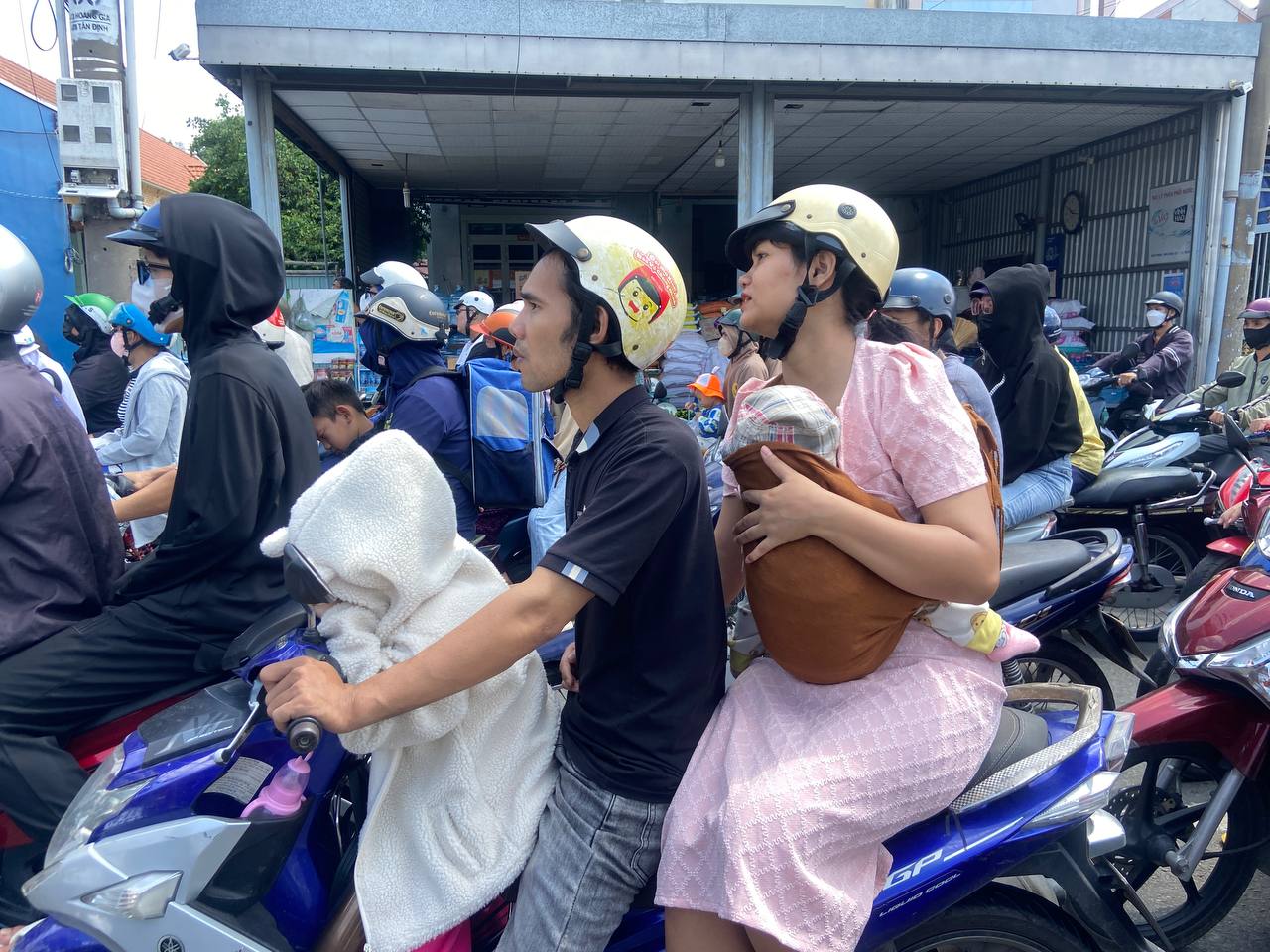 Chính vì vậy, người dân buộc phải chấp nhận gửi xe tại những điểm trông giữ xe tự phát cách cổng vào của Khu du lịch Đại Nam khoảng 2km và đi bộ vào phía trong. Thời tiết nắng nóng tại Bình Dương khiến hành trình đi chơi cuối tuần của người dân thêm phần vất vả nhưng cũng không cản được dòng người đổ về mỗi lúc một đông. Rất nhiều người đã thuê xe ôm với giá 50.000 đồng/ chuyến để di chuyển từ điểm gửi xe vào cổng Khu du lịch Đại Nam.