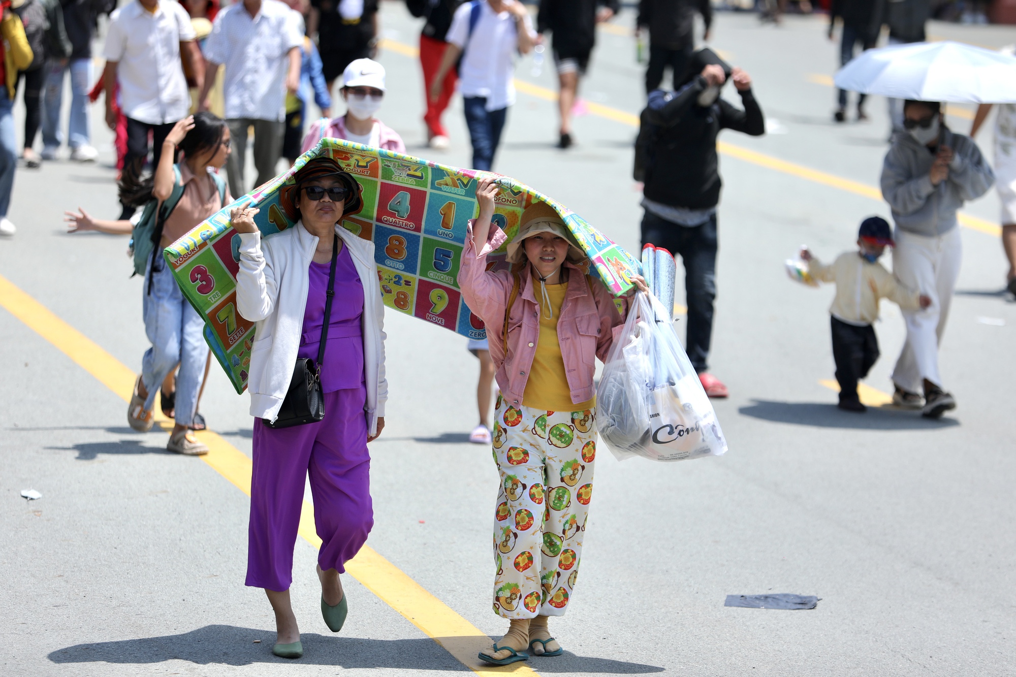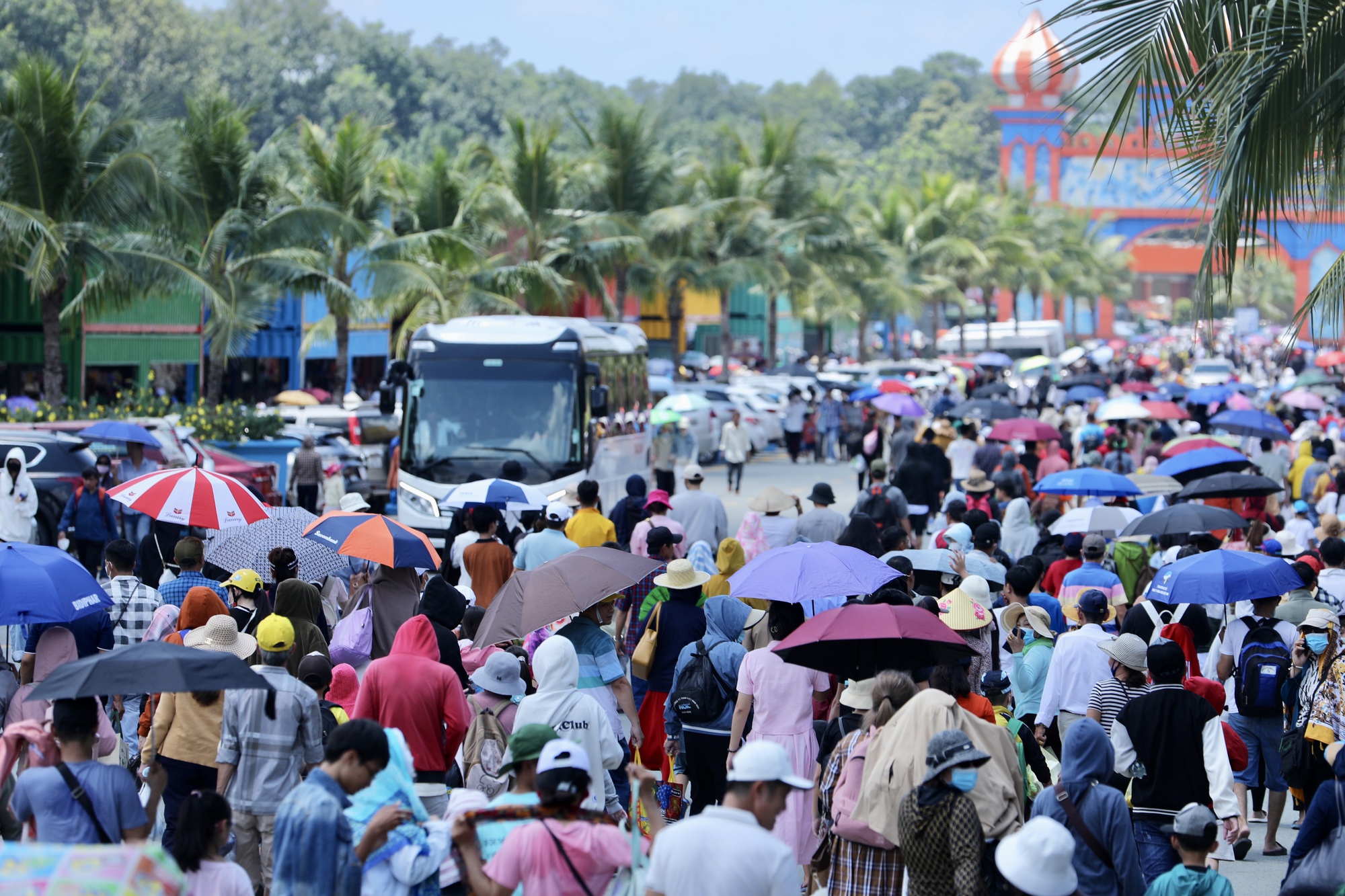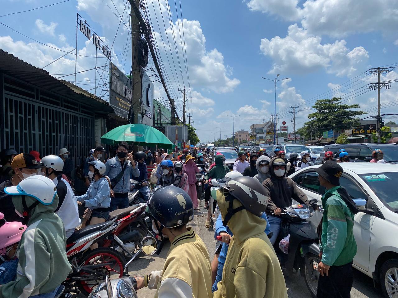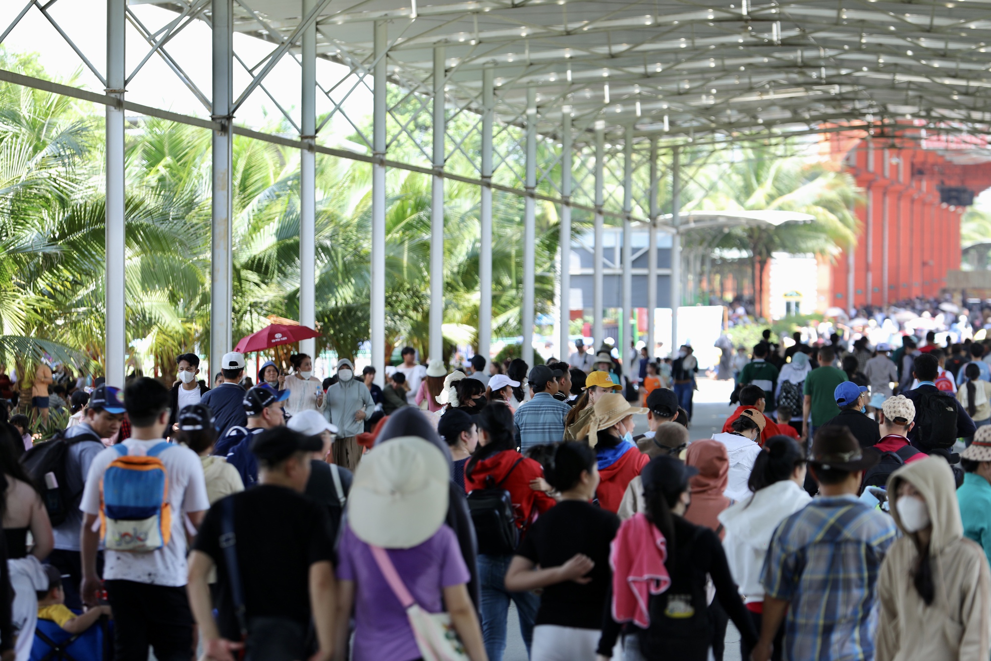 Chính vì vậy, người dân buộc phải chấp nhận gửi xe tại những điểm trông giữ xe tự phát cách cổng vào của Khu du lịch Đại Nam khoảng 2km và đi bộ vào phía trong. Thời tiết nắng nóng tại Bình Dương khiến hành trình đi chơi cuối tuần của người dân thêm phần vất vả nhưng cũng không cản được dòng người đổ về mỗi lúc một đông. Rất nhiều người đã thuê xe ôm với giá 50.000 đồng/ chuyến để di chuyển từ điểm gửi xe vào cổng Khu du lịch Đại Nam.