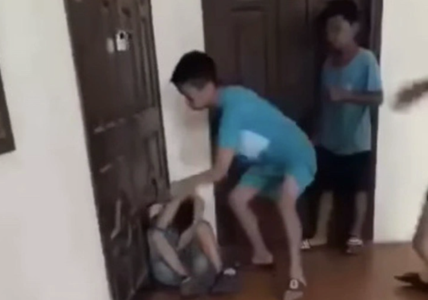 Trong clip, mặc cho nam thiếu niên ngồi kêu khóc, 4 thiếu niên khác liên tục lao vào dùng tay chân đánh, còn một thiếu niên khác đứng quay clip.