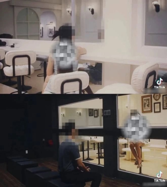 "Tuy nhiên, thực tế quán sử dụng kính một chiều, bên nữ nhìn vào là đang soi gương nhưng bên nam hoàn toàn có thể nhìn thấy bên nữ. Đặc biệt, ghế bên nam được bố trí thấp hơn hẳn và tầm nhìn đặt đúng vào phần dưới các bạn nữ ngồi phía bên kia. Hãy nghĩ đến việc các bạn nữ thoải mái tự nhiên hành động mà không biết rằng chỉ cần mình hớ hênh một chút là sẽ bị nhìn thấy hết vùng nhạy cảm", tài khoản này đăng tải.
