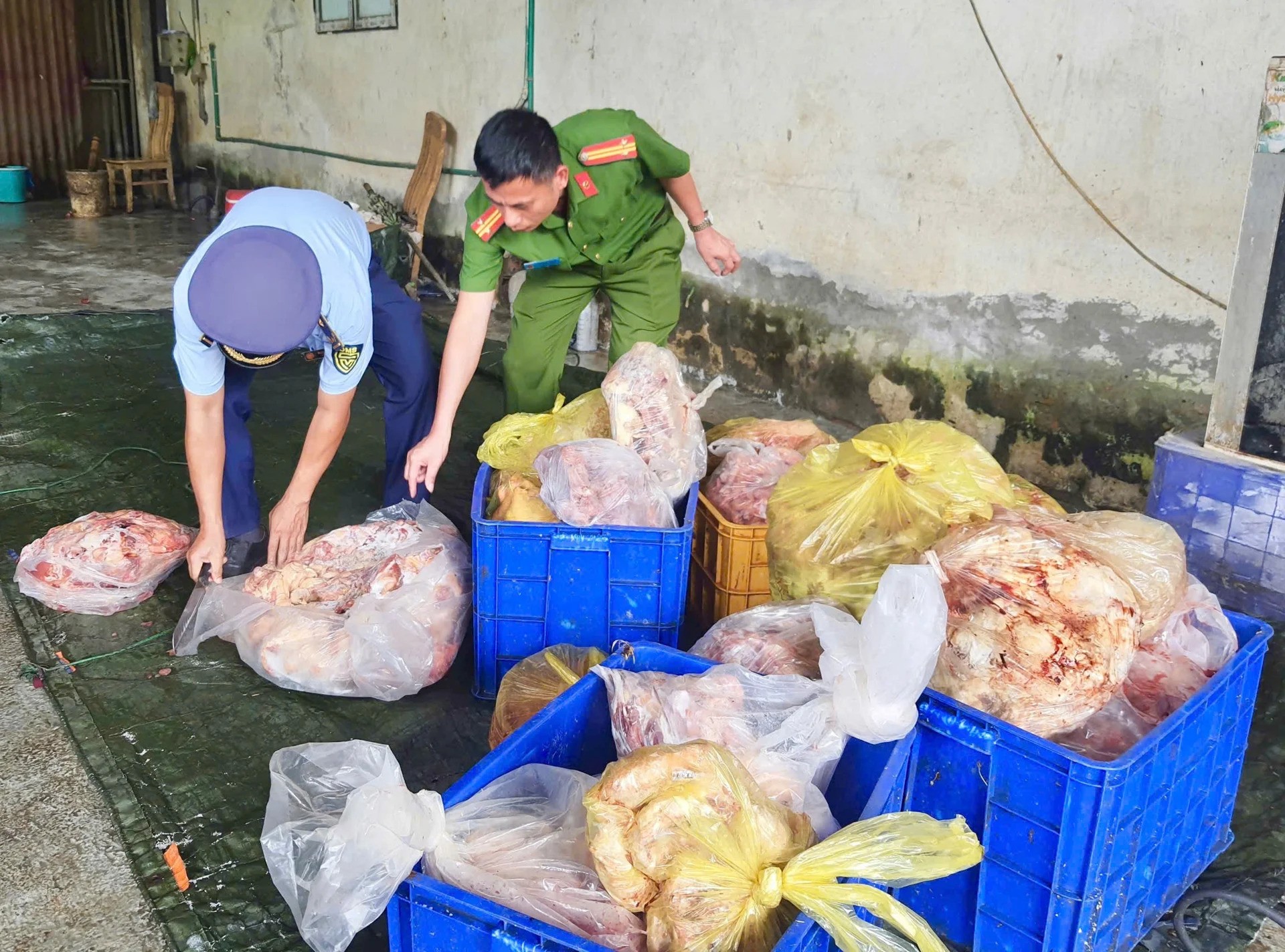 Kết quả kiểm tra cho thấy trong kho có chứa hơn 3,9 tấn thực phẩm đông lạnh gồm cổ gà, cánh gà, chân gà... đã qua sơ chế, biến đổi màu sắc, bốc mùi hôi thối nồng nặc - dấu hiệu rõ ràng của thực phẩm hư hỏng, không đảm bảo an toàn.
