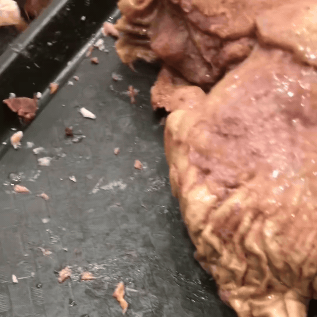 Trong góc nhà, một cảnh tượng đáng sợ hiện ra làm nhiều người không khỏi rùng mình. Tại đây, những túi thịt bò, không còn giữ được vẻ tươi ngon ban đầu, nằm lăn lóc trên nền nhà cáu bẩn, đen kịt. Thịt bò đã được nấu chín nhưng giờ đây chỉ còn là những miếng thịt nhũn nhão. Khi chạm vào, có thể dễ dàng nhấc bằng viền thịt mềm, thấy nhơm nhớp.