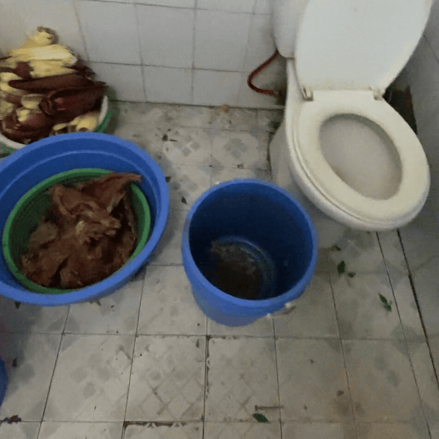 Vấn đề vệ sinh trong quán bún bò trở nên đáng lo ngại khi những khối thịt bò không chỉ không được bảo quản cẩn thận mà còn bị để chất đống trong khu vực vệ sinh. Sự cẩu thả trong quy trình chuẩn bị thực phẩm không dừng lại ở đó, mà còn lan ra tới các tiện ích khác, bao gồm cả nguồn nước sử dụng trong nhà bếp. Nước, yếu tố quan trọng trong việc nấu nướng, đặc biệt là khi chuẩn bị nước dùng, lại đang bị lấy từ vòi nước có vị trí đặt không hợp lý, ngay gần khu vực chân đứng, nơi tiếp xúc với môi trường không sạch sẽ.