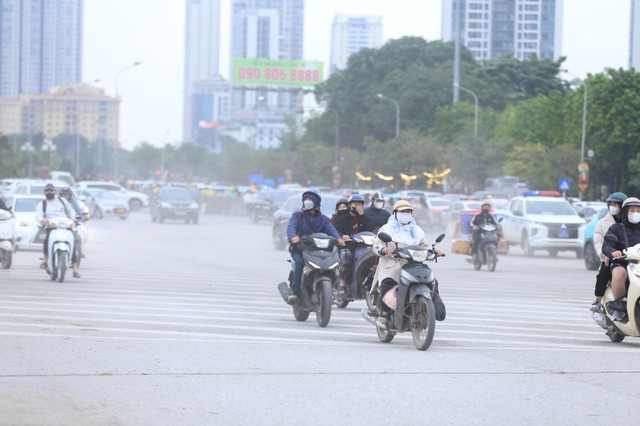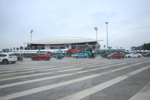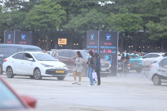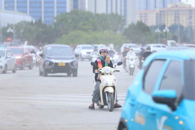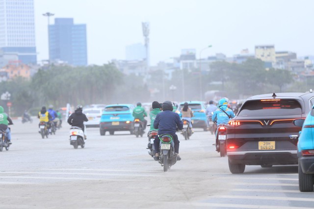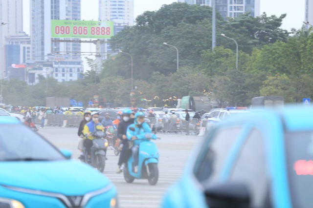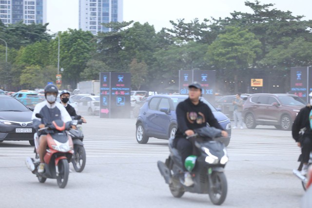 Tuy nhiên, vào cuối giờ chiều, khi lưu lượng lượng phương tiện di chuyển qua khu vực bên ngoài cổng chính SVĐ Mỹ Đình tăng cao khiến bụi bay mù mịt, người dân như bị cuốn vào một làn "sương khói" mờ ảo.