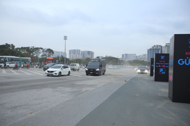 Trao đổi với chúng tôi, một chiến sĩ công an đang làm nhiệm vụ tại đây cho biết, "Do diễn ra concert "Anh trai say hi" vào 19h tối nay nên một phần đường chính đã được ngăn lại phục vụ đêm diễn. Do vậy, người dân phải di chuyển vào phần đường bị rào chắn trước đó khi bụi đất tại đoạn đường này chưa kịp dọn dẹp cộng với trời hanh khô dẫn đến bụi bay mù mịt".