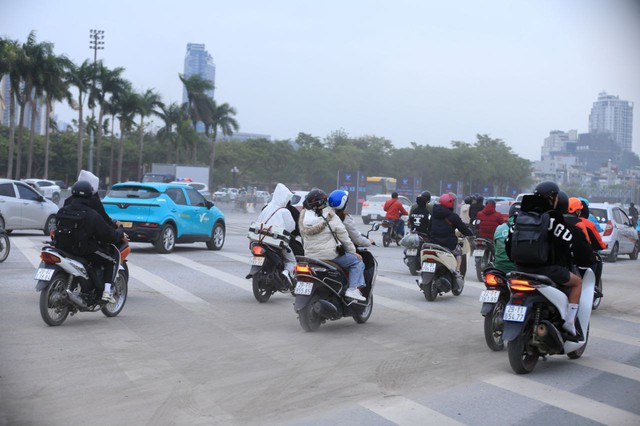 Việc di chuyển qua khu vực SVĐ Mỹ Đình trở nên khó khăn với nhiều người đi đường khi bụi bay mù mịt. Đặc biệt, với một số người đi xe máy, phải dùng một tay để bịt mũi, hí mắt cố gắng di chuyển qua đoạn đường này.