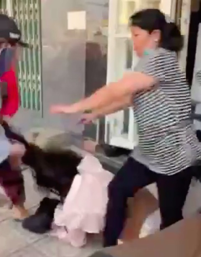 Chưa dừng lại ở đó, cả nhóm phụ nữ còn xông tới hành hung, thậm chí cầm dép tát thẳng vào mặt mặc cho cô gái góc lóc, van xin.