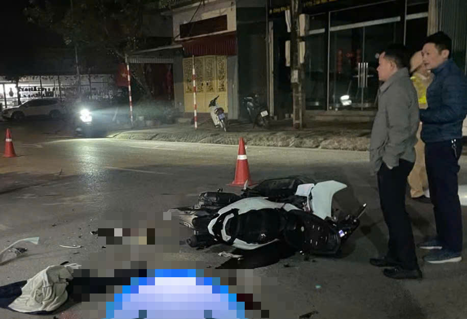 Cú va chạm mạnh khiến 2 người đi xe máy ngã nhào, văng xuống đường. Tại hiện trường, các nạn nhân nằm bất động, mảnh vỡ từ phương tiện văng tung tóe khắp nơi.
