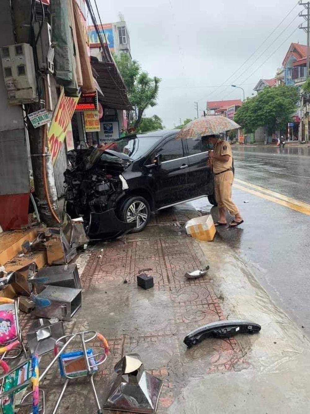 Thời điểm đó, trời mưa, người phụ nữ một tay cầm ô, một tay điều khiển xe đạp điện chạy sang phần đường ngược chiều và bị một chiếc ô tô hiệu Mitsubishi loại 7 chỗ chạy với tốc độ cao tông trúng.