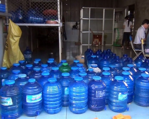 | Bên trong cơ sở sản xuất nước uống Đại Dương vào thời điểm Chi cục ATVSTP đi kiểm tra |