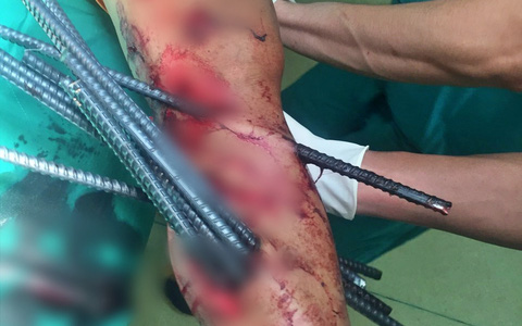 Các bác sĩ cho biết đây là tai nạn hy hữu, rất nguy hiểm. May mắn là bệnh nhân được phẫu thuật cấp cứu kịp thời, được sơ cứu tại chỗ hợp lý (cắt và giữ nguyên thanh sắt xuyên chân, cố định tạm).