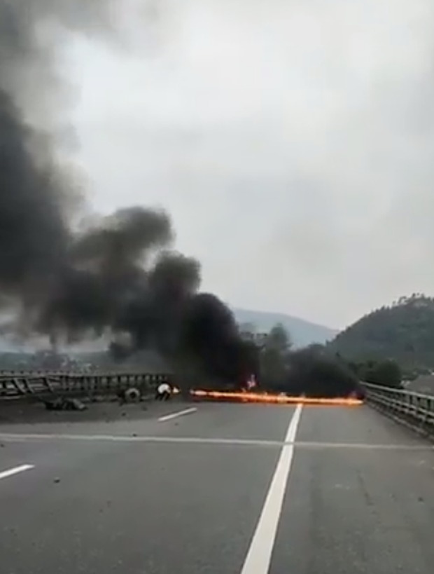 Lãnh đạo Ban quản lý tuyến cao tốc Nội Bài - Lào Cai cho biết, ngọn lửa bốc cháy dữ dội là do bình nhiên liệu của xe container bị thủng sau khi va chạm với dải phân cách dẫn tới dầu loang ra ngoài và bắt lửa gây cháy. Sau khoảng 20 phút, đám cháy đã được dập tắt.