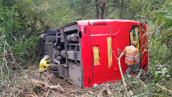 Lúc này, trên xe có khoảng 20 hành khách (gồm tài xế và phụ xe). Ai nấy bị một phen hoảng loạn, la hét thất thanh và đập cửa kính ra ngoài. Rất may xe khách bị lật ngay khu vực có nhiều cây rừng giữ lại nên không ai bị thương nặng, theo Người lao động.