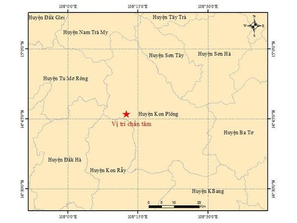 Theo đó, một trận động đất có độ lớn 4.7 xảy ra tại vị trí có tọa độ (14.768 độ vĩ Bắc, 108.209 độ kinh Đông) ở độ sâu 8,2 km, gây chấn động một khu vực rộng lớn. Động đất xảy ra tại khu vực huyện Kon Plông, tỉnh Kon Tum. Trung tâm Báo tin động đất và cảnh báo sóng thần đã phát đi cảnh báo cấp độ rủi ro thiên tai ở cấp 1.