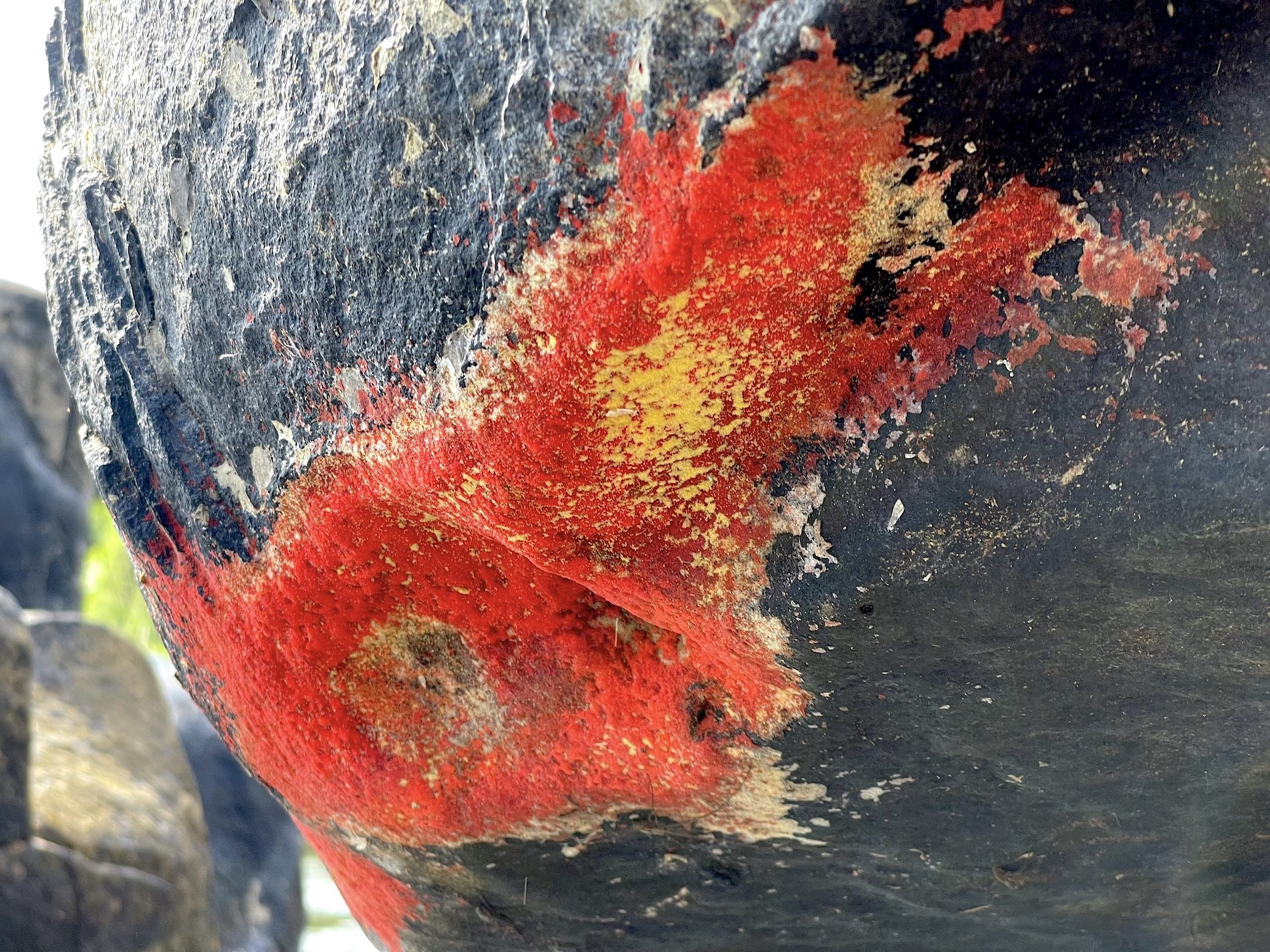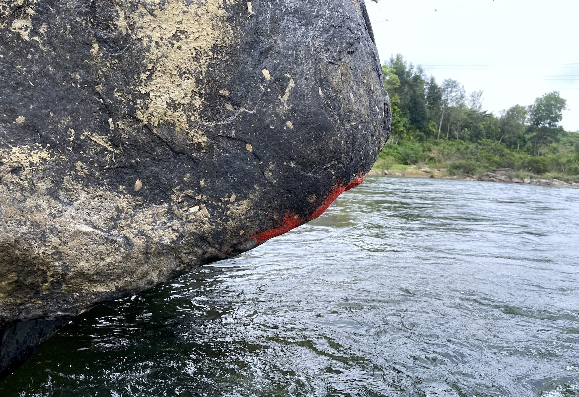 Tảng đá khá lớn, nằm nhô ra giữa dòng sông Trạm (một nhánh sông Tiên, ở thôn 2, xã Tiên An, huyện Tiên Phước). Trên tảng đá xuất hiện một lớp như xốp, chiều dài chừng sải tay của một người trưởng thành, nơi rộng nhất khoảng 50cm, nhiều màu sắc, nằm ngay dưới mép tảng đá hướng xuống dòng nước.