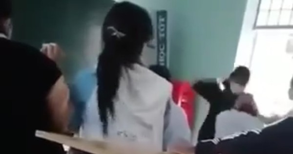 Như Báo Người Lao Động đã phản ánh, trưa 6-5, trên mạng xã hội đăng tải đoạn clip ghi lại cảnh 1 nữ sinh dùng mũ bảo hiểm đánh bạn nam tại lớp, trước mặt thầy giáo. Lúc này, nam sinh chỉ ngồi tại bàn, dùng tay ôm đầu. Thấy vậy, một nam sinh khác can ngăn, đẩy nữ sinh ra xa trong khi thầy giáo ngồi tại bục giảng không có phản ứng gì khiến cộng đồng mạng bức xúc.