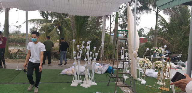 Ông Quân chia sẻ: "Rất may số cỗ 50 mâm đã đặt nhà hàng được chấp nhận hủy nên gia đình bớt lo rất nhiều. Rồi, chỗ rạp cưới đã trang hoàng xong từ chiều 6/3 cùng hệ thống âm thanh, loa đài đã lắp đặt cũng phải nhờ đơn vị thi công tạo điều kiện xử lý giúp v.v…
