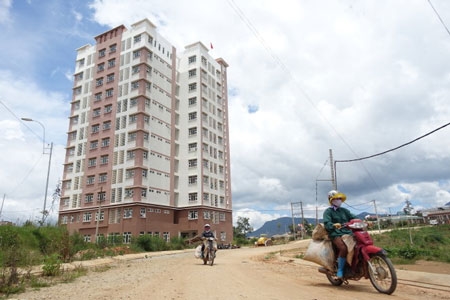 Tòa nhà B3 đang sử dụng nằm giữa vùng nông nghiệp, có 140 phòng (sức chứa khoảng 1.000 sinh viên) nhưng hiện chỉ có 120 sinh viên đăng ký ở - Ảnh: M.Vinh |