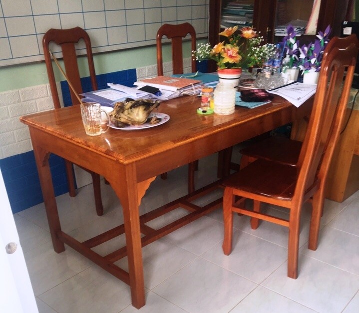 Ngoài ra, anh Giàu còn cung cấp cho PV hình ảnh con gà luộc đựng trong đĩa đặt tại bàn làm việc được cho là phòng của cô D. (Hiệu phó). Bên cạnh có 1 chiếc chén (bát ăn cơm), cùng 3 cây nhang đang cháy cắm vào ly nước. Anh Giàu nói: “Tôi không biết mục đích nhà trường cúng gà trong phòng làm việc để làm gì?, nhưng công sở, trường học mà cúng kiếng cái gì…”. Bực tức, ngày 10/7, anh Giàu gửi đơn các cơ quan chức năng yêu cầu làm rõ và xử lý thích đáng những người có liên quan đến việc bắt gà của anh đem đi cúng. Hai ngày sau, ban Giám hiệu nhà trường đến gặp gia đình anh Giàu nói thẳng thừng: “Gà qua trường người ta bắt đập. Có thưa thì thưa đi…”. Vì thế, anh Giàu gửi tiếp đơn yêu cầu xử lý lần hai.