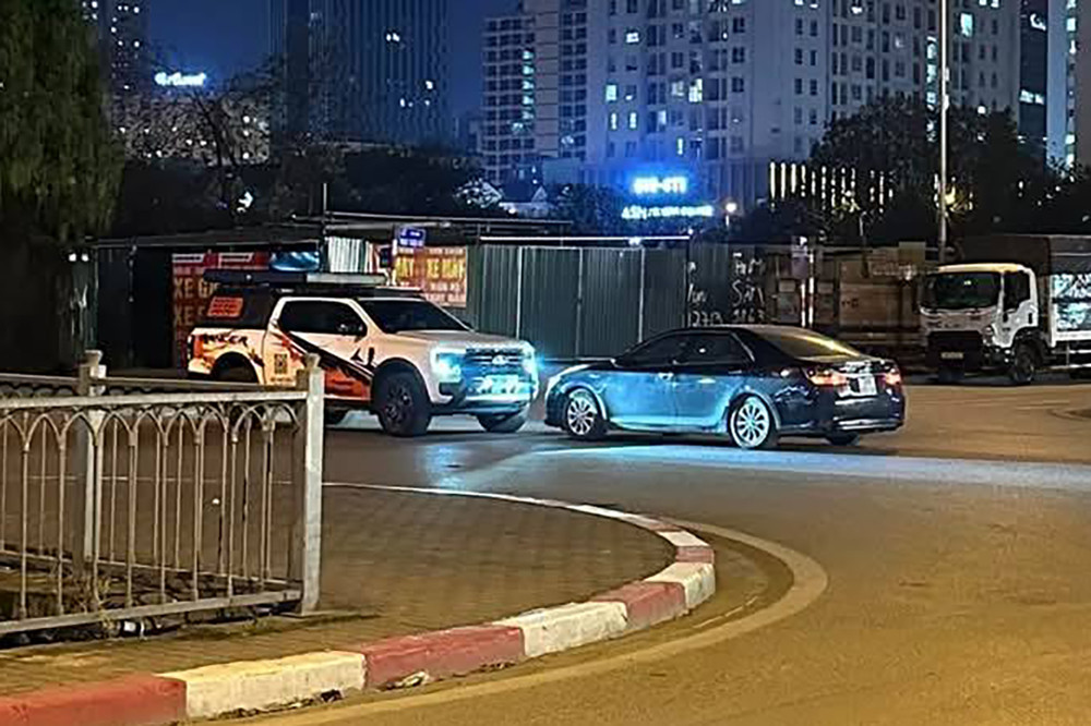 Theo hình ảnh và nội dung trong bài viết, sự việc xảy ra vào đêm cùng ngày, khi ô tô con màu đen, mang BKS 30A- 660.XX và xe bán tải màu trắng mang biển số 29K-100.XX bất ngờ dừng giữa đường.