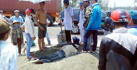 Nhân viên y tế sơ cấp cứu cho nạn nhân tại hiện trường. Ảnh: Sông Hàn. |