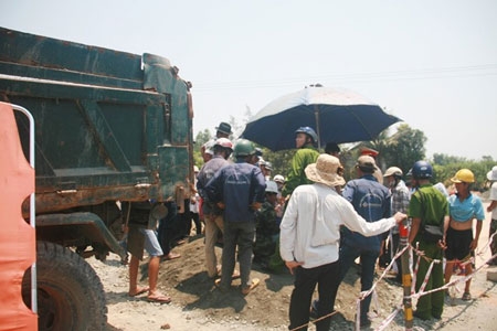 Ông Thanh cho biết: "Xe của tôi có tải trọng hơn 2 tấn, chở cấp phối đá dăm thi công dự án quốc lộ 1A. Khi xe đang đổ đất đá thì bất ngờ có người lao tới. Sự việc xảy ra quá đột ngột nên tôi không kịp ngăn lại".