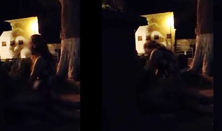 Đôi trai gái được cho là "mây mưa" tại bến Ninh Kiều. (Ảnh cắt từ clip) |