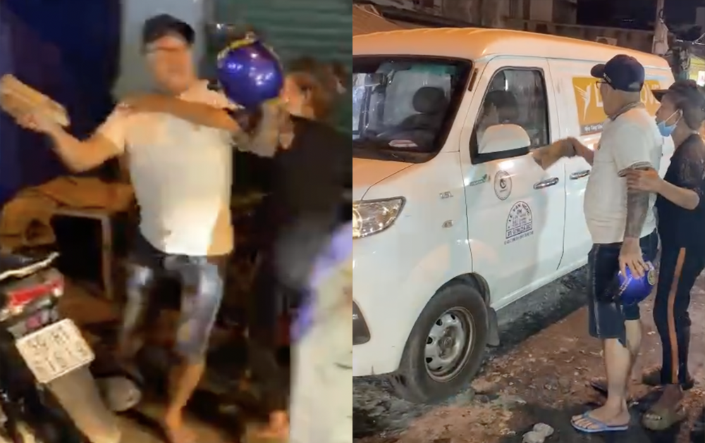Người đàn ông cho rằng tài xế N. bóp còi xe inh ỏi nên bực tức. Ban đầu người này xuống xe, dùng nón bảo hiểm đập vào kính xe, yêu cầu ông N. xuống xe nói chuyện.