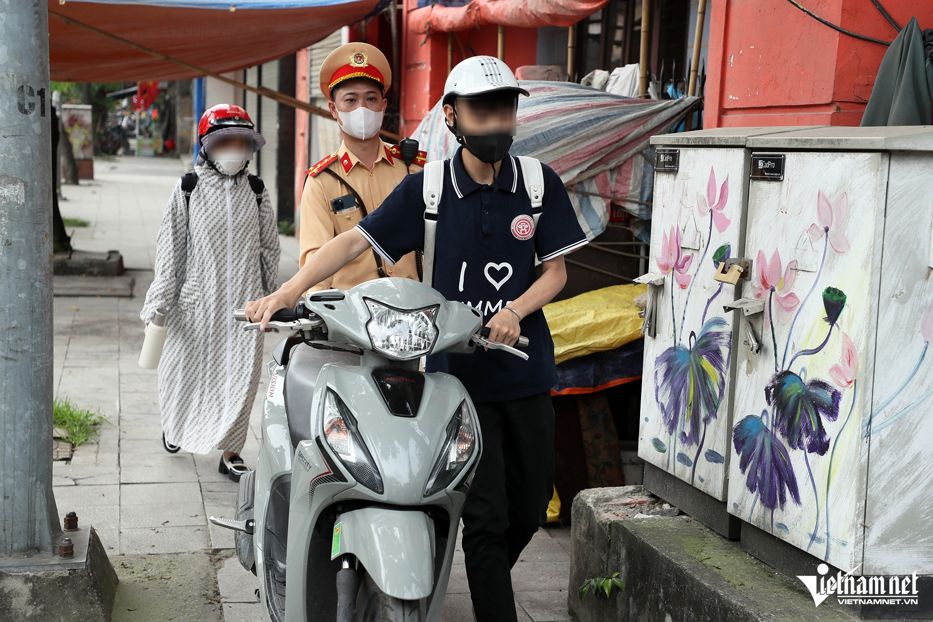 Quá trình kiểm tra, cảnh sát xác định nam sinh học lớp 12 của một trường THPT trên địa bàn quận Hà Đông; người phụ nữ ngồi sau xe nhận là mẹ ruột của nam sinh.