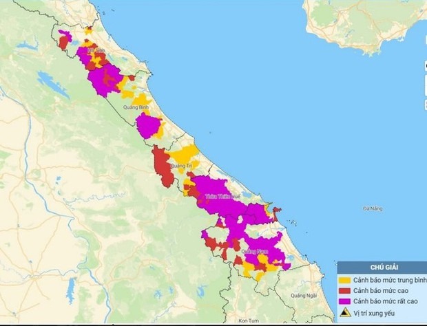 Nguy cơ cao lũ quét, sạt lở đất xảy ra tại khu vực vùng núi, ngập lụt cục bộ vùng trũng thấp ven sông và khu đô thị tại các tỉnh từ Hà Tĩnh đến Quảng Nam.