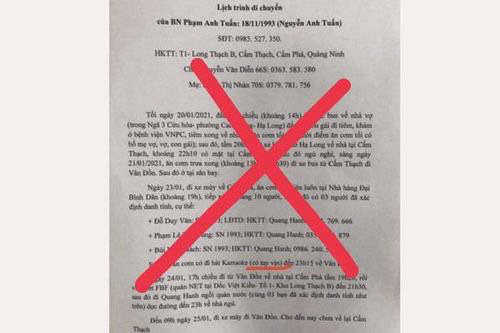 Tối 28/1, đại diện Phòng An ninh chính trị nội bộ (PA03) Công an tỉnh Quảng Ninh cho biết, đơn vị này đang lập danh sách, triệu tập những người chia sẻ thông tin sai sự thật về dịch Covid-19 để làm việc.
