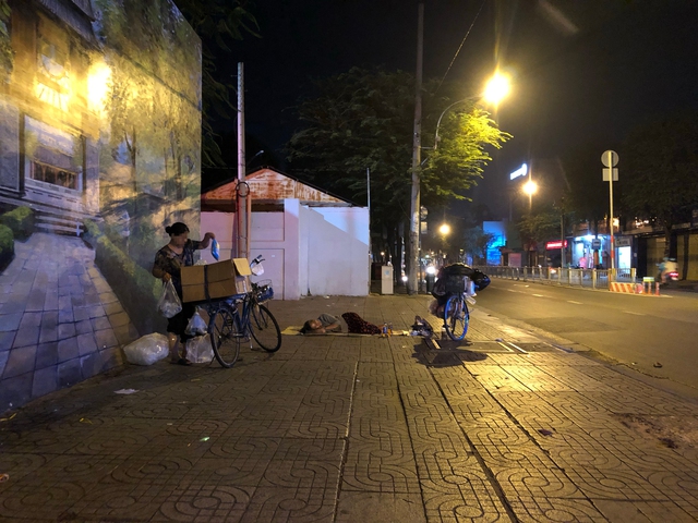 Đến khoảng 22 giờ, số người đi phát quà ít dần, những người ăn xin dọc đường lần lượt rời đi. Họ tiếc nuối trước đây có khi ngồi tới 1-2 giờ sáng vẫn có quà để nhận nhưng bây giờ số người phát quà đã giảm nên chờ đợi chỉ mất công.