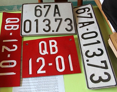 Các biển số giả được phát hiện trong xe - Ảnh: B.Đấu |