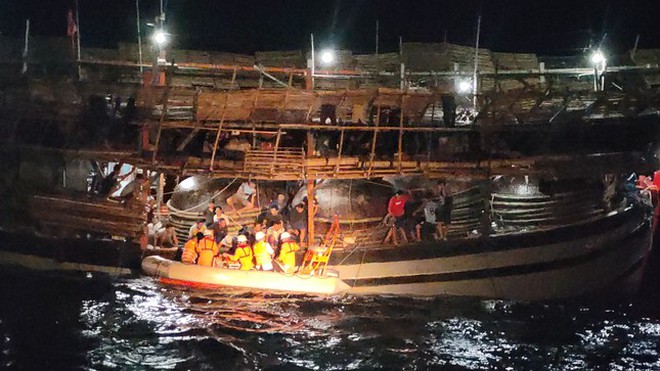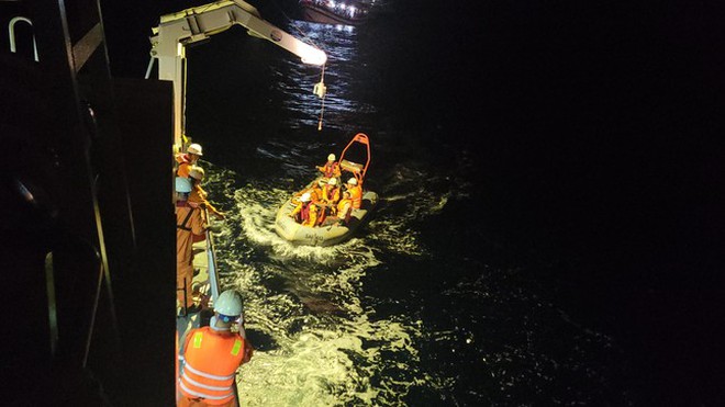 Sau 5 giờ tàu chạy hết tốc lực thì gặp được tàu đã cứu con mình. Tình thế khẩn cấp, ông Tâm liên lạc vào bờ yêu cầu ra ứng cứu, đồng thời cùng tàu chạy hướng vào bờ. Chạy được nhiều giờ thì gặp được tàu của Trung tâm Phối hợp tìm kiếm, cứu nạn hàng hải khu vực II (Danang MRCC). Các y bác sĩ của tàu cứu nạn lập tức đưa nạn nhân lên tàu tiến hành sơ cứu.