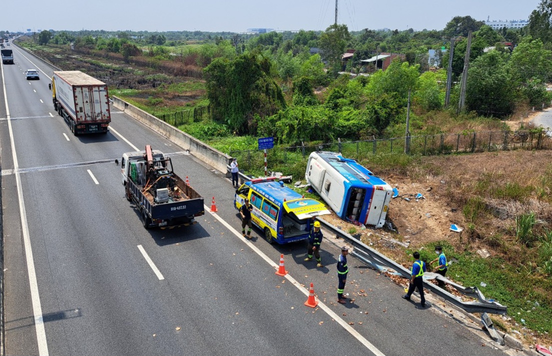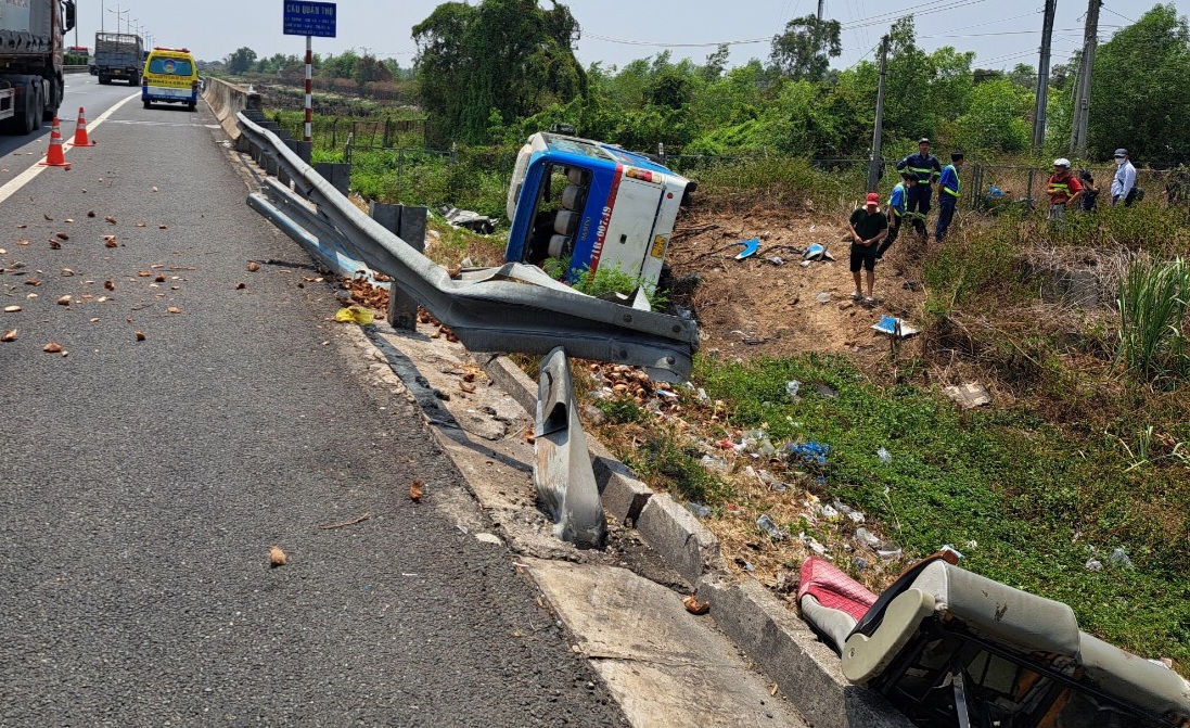 Trưa ngày 9/3, xe khách 29 chỗ lưu thông trên cao tốc TP Hồ Chí Minh - Trung Lương hướng từ TP Hồ Chí Minh về Tiền Giang, khi đến Km45+330 thì bất ngờ mất lái, va vào hộ lan tôn sóng, rồi lao xuống taluy đường.