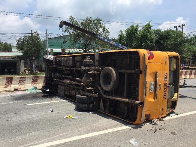 Khi đến đoạn thuộc phường Mỹ Phước, thị xã Bến Cát, xe bị nổ bánh, mất lái rồi lật ngang giữa đường.