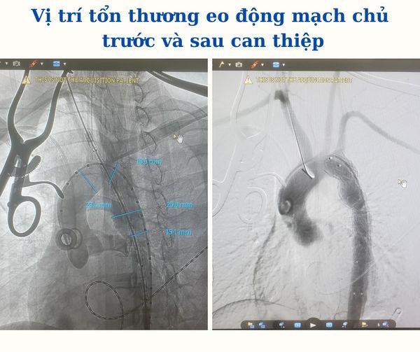 Stent graft đưa vào lòng động mạch sẽ có tác dụng như một màng bọc vững chắc bảo vệ đoạn eo động mạch chủ đang bị vỡ. Ca can thiệp diễn ra thành công. Đến hiện tại tình hình sức khỏe bệnh nhân đã ổn định, ý thức tỉnh táo, không còn khó thở, hết đau ngực và đã được xuất viện theo dõi thêm tại nhà.