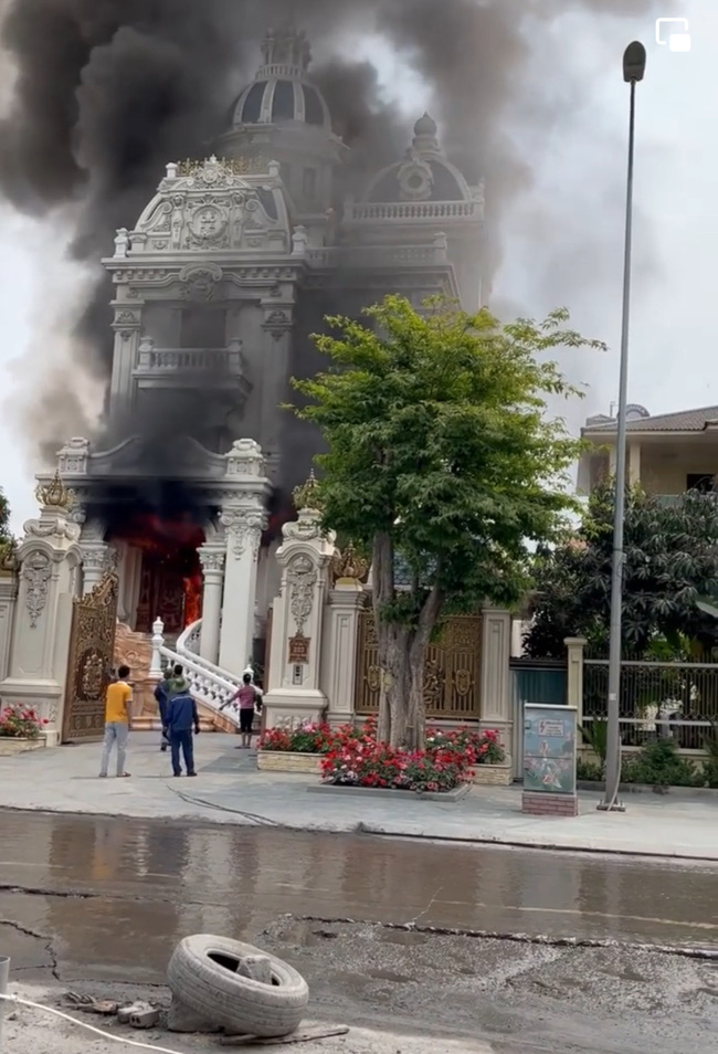 Tại hiện trường, ngọn lửa bùng lên rất lớn, xuất phát từ bên trong tòa lâu đài, cột khói bốc cao hàng chục mét.