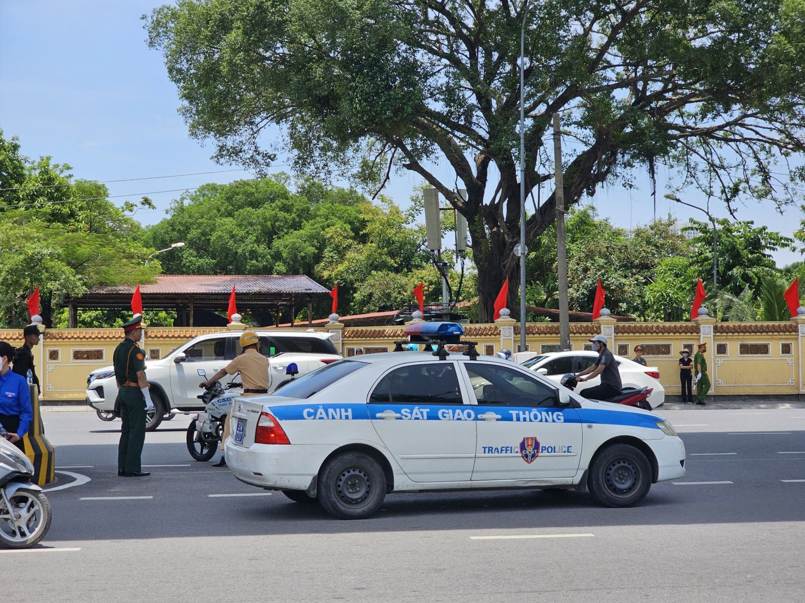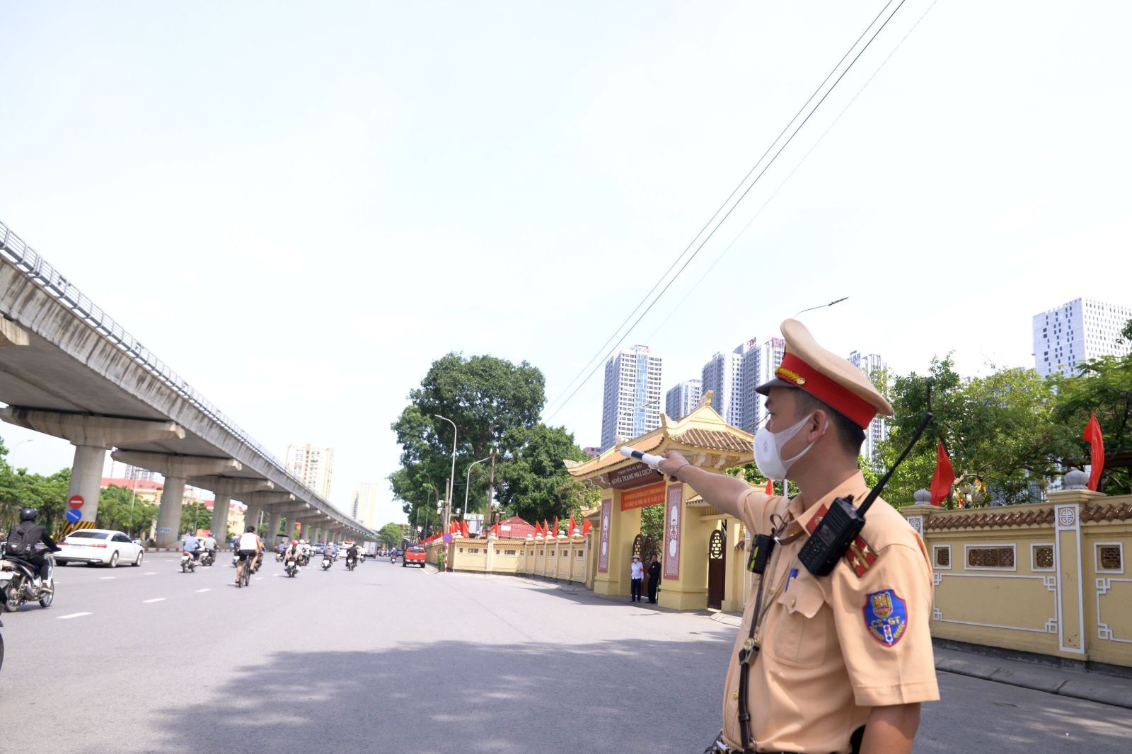 Công tác an ninh, phân luồng giao thông được tăng cường trên các tuyến đường đến Nghĩa trang Mai Dịch (Ảnh: Trung Nguyên/Báo Tin tức)