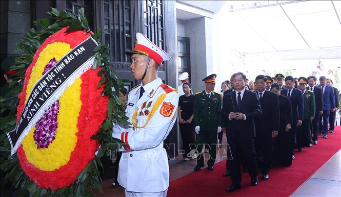 Sáng 26/7, Đoàn tỉnh Bắc Kạn đến viếng Tổng Bí thư Nguyễn Phú Trọng tại Nhà tang lễ Quốc gia số 5 Trần Thánh Tông, thành phố Hà Nội.