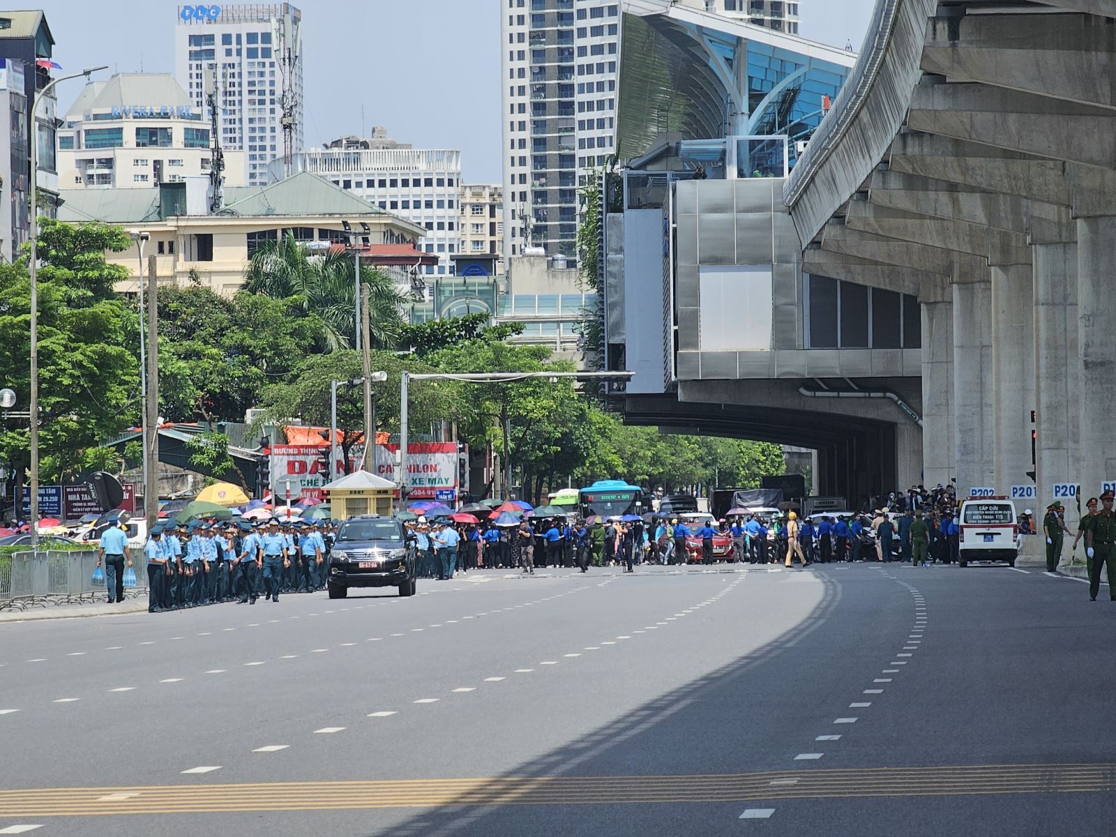 Đoàn xe chở linh cữu Tổng Bí thư Nguyễn Phú Trọng di chuyển đến Nghĩa trang Mai Dịch