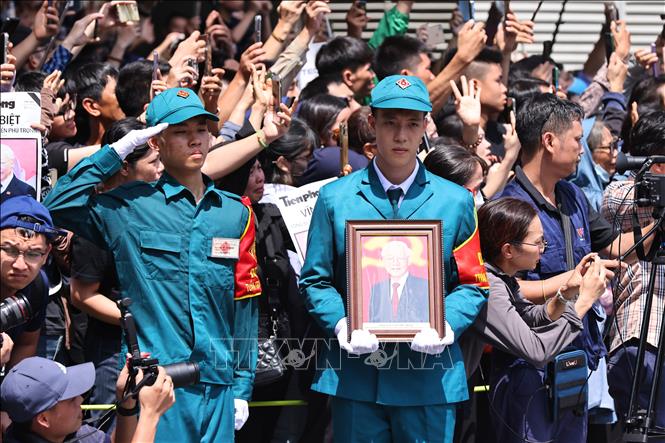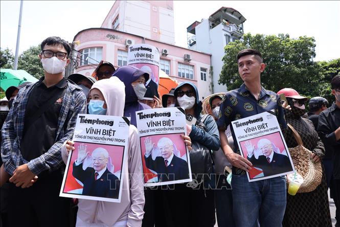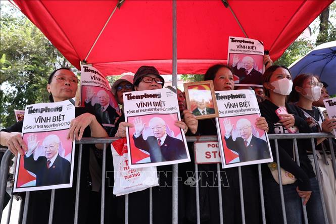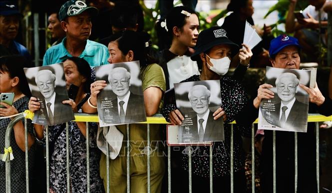 Trong niềm xúc động, tiếc thương sâu sắc, từ sáng sớm hai ngày Lễ Quốc tang (25 - 26/7), các Đoàn đại biểu Đảng, Nhà nước, Quốc hội, Chính phủ, Mặt trận Tổ quốc Việt Nam, các bộ, ban, ngành, cán bộ, chiến sĩ các lực lượng vũ trang cùng đông đảo tầng lớp nhân dân Thủ đô và nhiều tỉnh, thành phố trong cả nước đã tập trung tại khu vực Nhà Tang lễ Quốc gia - số 5 Trần Thánh Tông (Hà Nội) dự Lễ viếng Tổng Bí thư Nguyễn Phú Trọng - Nhà lãnh đạo đã có nhiều công lao to lớn, đặc biệt xuất sắc đối với sự nghiệp cách mạng vẻ vang của Đảng và dân tộc.